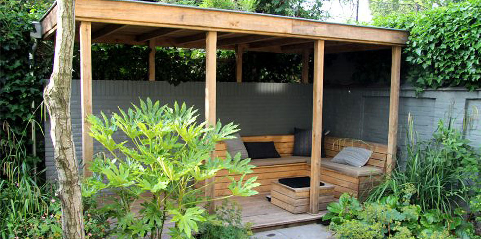 Diagonalen brengen beweging en dynamiek in de tuin. Diagonalen zijn ook lange lijnen, je kunt ze als een schuine lijn door de tuin laten lopen of meer genuanceerd met een getrapte of zelfs een gebogen lijn. Hoogteverschillen voegen ruimtelijk gezien veel toe aan de (kleine) tuin, toch is het opvallend hoe weinig dit wordt toegepast. Met een zorgvuldig uitgekozen hoogteverschil zet je de compositie aan, leg je accent op plekken waarmee je de ruimtelijkheid maar ook de spanning sterker maakt. Een hoogteverschil in de vorm van een op- of afstap, vooral in combinatie met iets hogers zoals een pergola of boom, zorgt voor veel effect. Afstapjes en treden zorgen er feitelijk voor dat de beweging wordt vertraagd, het maakt je bewust dat je een nieuwe ruimte of ander deel van de tuin in gaat. Hoogteverschillen zorgen ook voor een ‘spel van schaduwen’, hetgeen meer diepte suggereert.