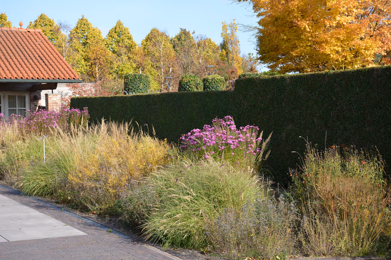Naast de ecologische waarde geven siergrassen ook esthetische waarde aan een ontwerp. Zo zorgen de verticale lijnen voor een afwisselende textuur in een beplantingsplan met ronde, geveerde, eivormige bladvormen. En met de transparante bloeiaren of pluimen breng je ‘lucht’ in een border. Siergrassen in een beplantingsplan maken voor mij het plaatje echt compleet.