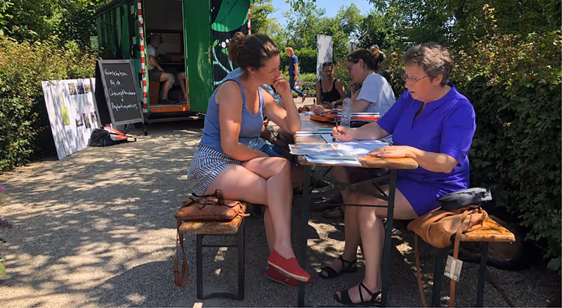 Dat het belangrijk is en blijft om elkaar fysiek te ontmoeten ervaarden we tijdens het Appeltern Plantenfestijn afgelopen weekend. Bij de SchetsKeet gaven studenten tuinadvies aan bezoekers, om hun advies- en schetsvaardigheden te trainen. Minstens zo waardevol is dat studenten elkaar (soms na lange tijd weer) ontmoeten, elkaar bijpraten en informatie uitwisselen. Bijzonder inspirerend hoe de gesprekken aan de ‘biertafel’ en in de keet verliepen. Er werden verbetervoorstellen voor plantenborders op Appeltern, lesblokopdrachten en ervaringen met docenten besproken. De sfeer was meer dan goed, studenten en klanten positief en opgewekt. Voor ons reden te meer om de kruisbestuiving tussen on- en offline activiteiten door te ontwikkelen en optimaal van elkaar te laten genieten.