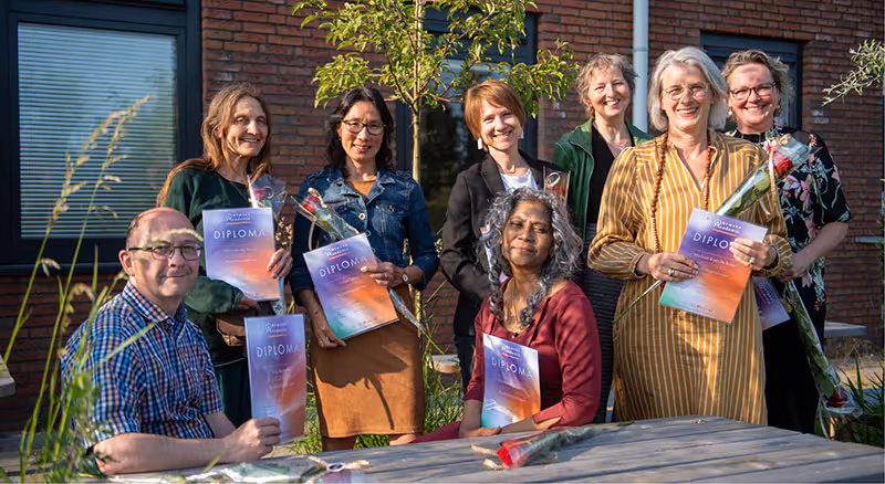 Maandag 5 juni was een dag met een goudgroen randje, want naast de groep kersverse Tuinontwerpers, namen de eerste lichting Beplantingsadviseurs het diploma in ontvangst. Een speciaal moment binnen de ontwikkeling van deze opleiding, die we in de huidige vorm sinds 2021 aanbieden. Een mooie prestatie die we met het hele docententeam hebben neergezet en ontzettend trots op zijn. We feliciteren de gediplomeerden nogmaals met het behalen van hun groene 'trofee' en wensen hen een mooie groene toekomst toe!