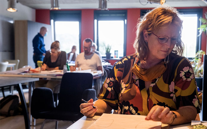 Mij is opgevallen dat studenten bij de OntwerpAcademie, hoewel zó divers van achtergrond en leeftijd, allemaal zeer gemotiveerd en geïnteresseerd zijn. Ze weten vaak al veel, van uiteenlopende onderwerpen en leren voortdurend van elkaar. De vaardigheden liggen uiteen, zowel mondeling als qua tekenvaardigheid en -techniek, maar echt elke student heeft talenten die worden benut. En ze leren vooral door het zelf te doen.