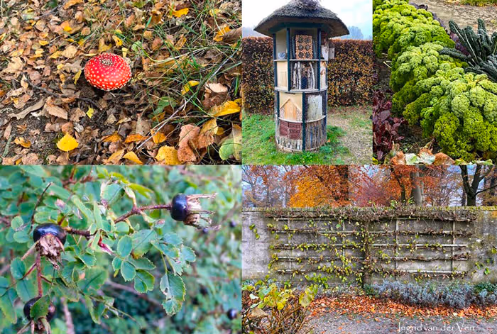 Met een kunstwerk, een beeld, borrelend of opspattend water creëer je een centrum waar de aandacht naar toe gaat, het doet je de beperkte ruimte vergeten. Dieren tenslotte zorgen eveneens voor aandacht. Vogels die zich tegoed doen aan vijgen of bijen die zoemend de ene na de andere bloem bestuiven. Lars laat tot slot nog een aantal tuinontwerpen zien waarbij de diverse ontwerpmiddelen terugkomen.