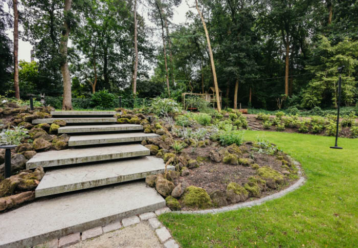 3. De Vries Tuinen: Een dynamische tuin vol organische vormen en hoogteverschillen. De variatie in materialen en de verrassende routing blijven de aandacht trekken.