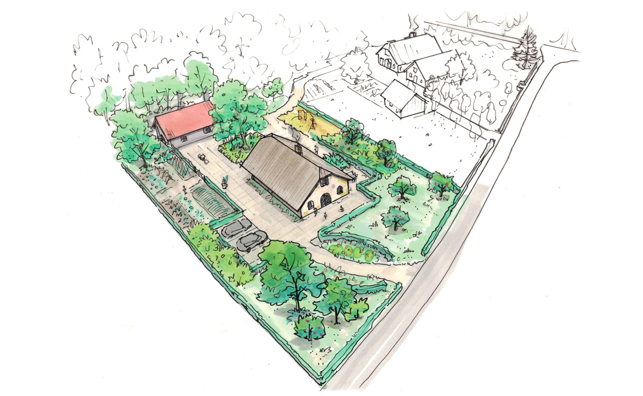 Tekenen/schetsen, visie en concept, eigen tuin ontwerpen